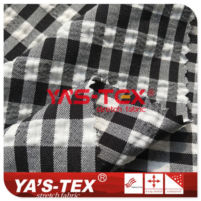 | Name: | Polyester yarn-dyed fabric, four-way stretch with long square lattice, uneven wrinkle style, sports stretch fabric【S4083】 |